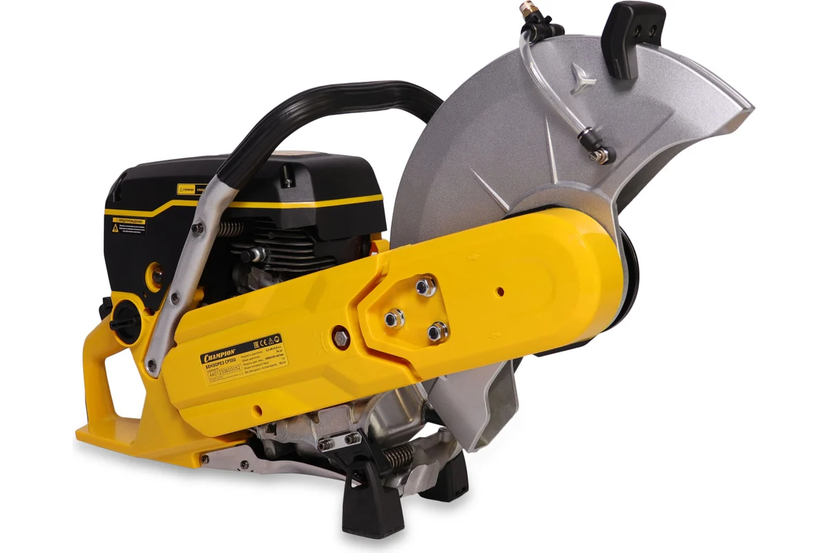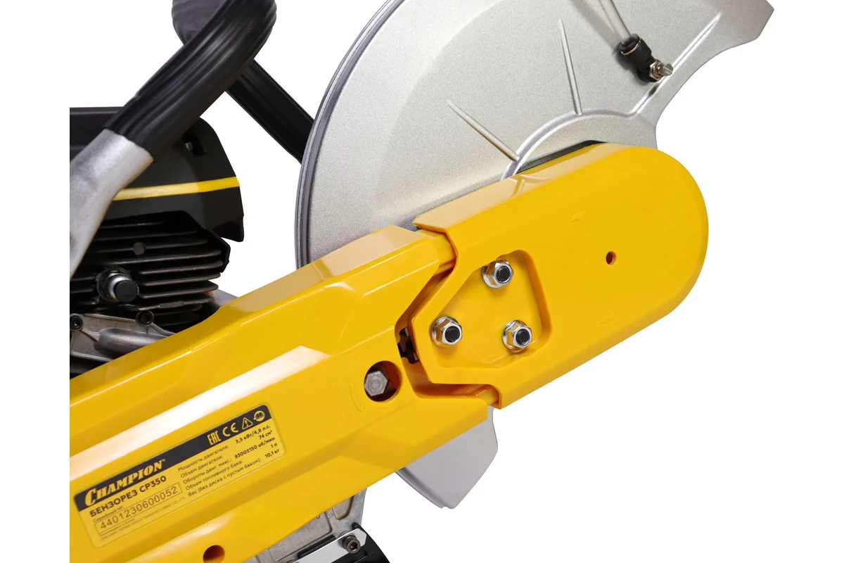 Бензорез CHAMPION CP350 мощностью 3,5 кВт предназначен для мокрой и сухой резки стали, бетона и асфальта. На инструмент устанавливается диск диаметром 350 мм (в комплект не входит) с посадочным диаметром 20 либо 25,4 мм.