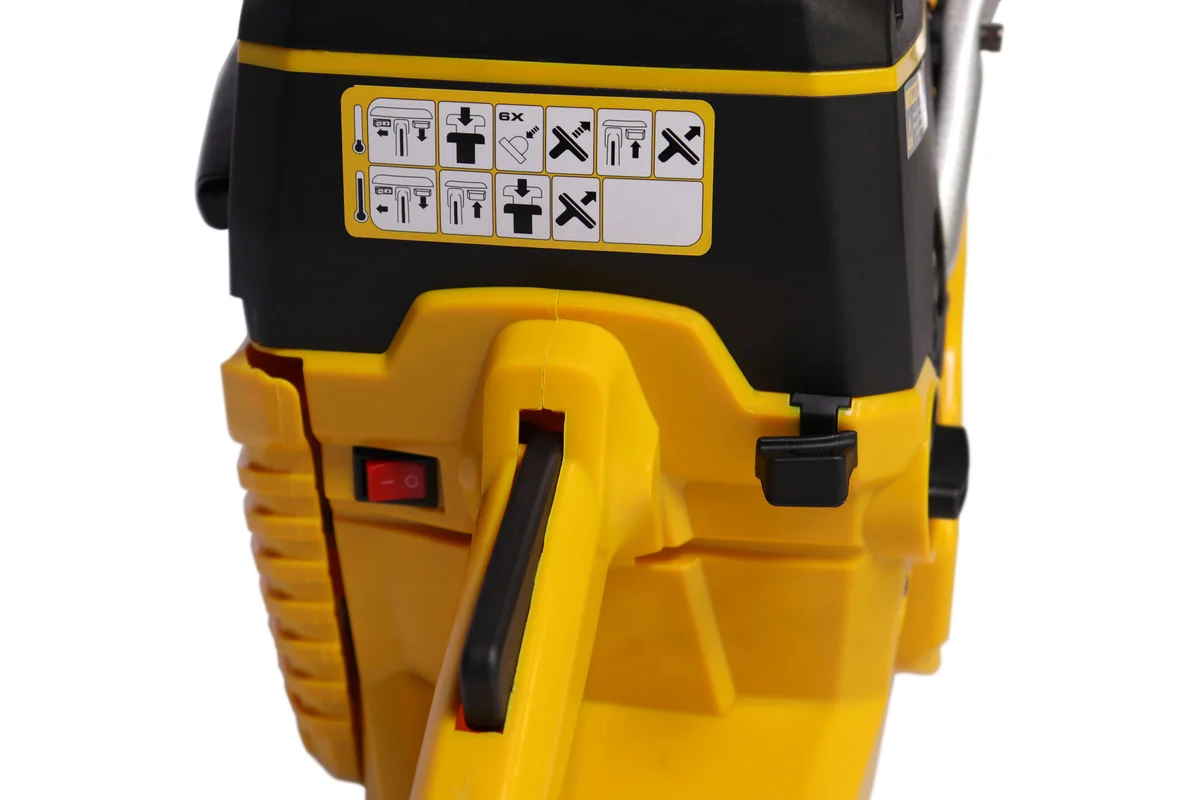 Конструкция бензореза позволяет переставлять режущий узел с внутренней стороны на внешнюю.