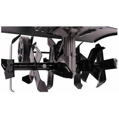 Червячная трансмисия содержит минимальное количество подвижных деталей, поэтому производить ее техническое обслуживание максимально просто — необходимо лишь время от времени проверять наличие смазки в корпусе редуктора. Складная рукоятка эргономичной формы снабжена рычагом управления приводом фрез, который моментально останавливает их вращение, как только оператор отпускает рукоятку.