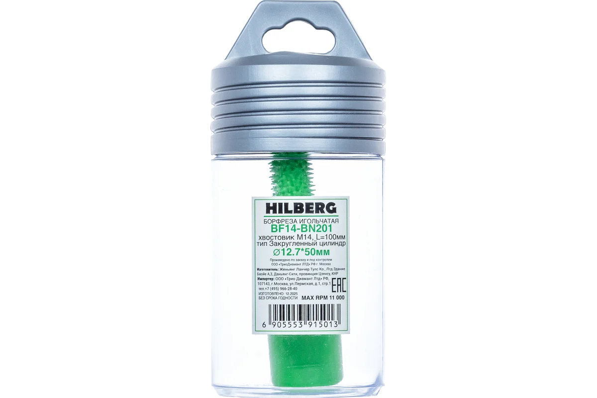 Борфреза игольчатая HILBERG M14, Закругленный цилиндр 12.7х50мм, L=100мм, BF14-BN201