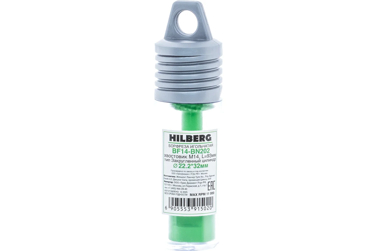 Борфреза игольчатая HILBERG M14, Закругленный цилиндр 22.2*32мм, L=93мм, BF14-BN202