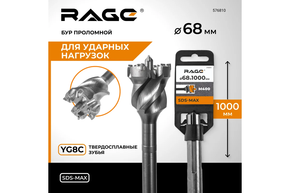 Бур проломной RAGE By VIRA 68х1000 мм SDS-max 576810