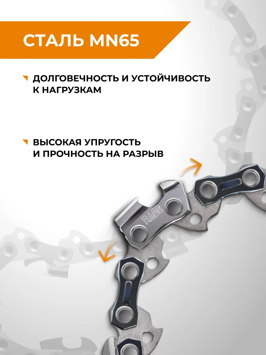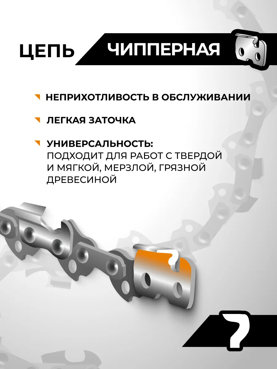 Чипперная пильная цепь отличается неприхотливостью к условиям использования, а также имеет более простую заточку по сравнению с чизельными цепями и возможность переточки в домашних условиях. Подходит для поперечного распила мягких пород деревьев. Режущий зуб выполнен из качественной стали MN65 главным преимуществом которой является способность выдерживать ударные нагрузки. Данная цепь предназначена для пилы с длиной шины 16 дюймов.
