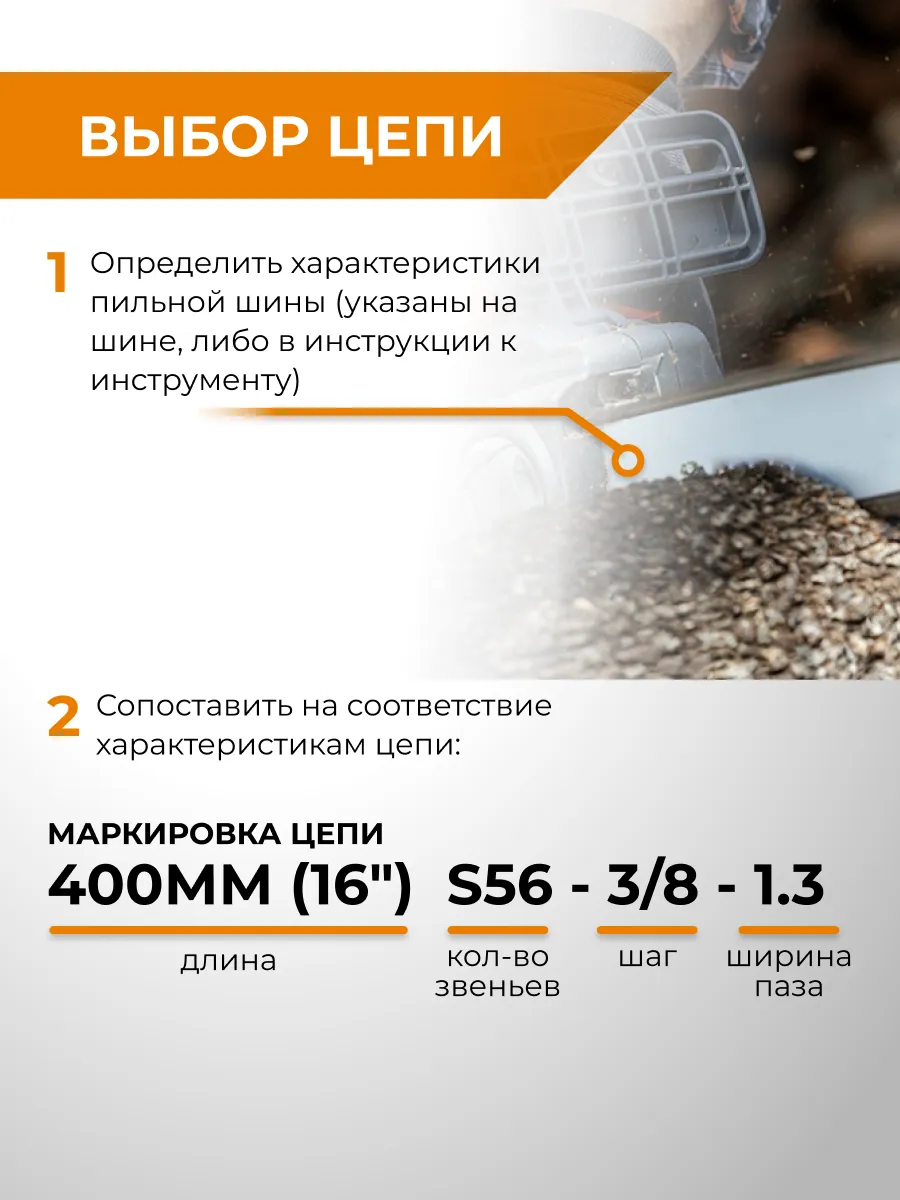 - Шаг цепи (дюйм): 3/8