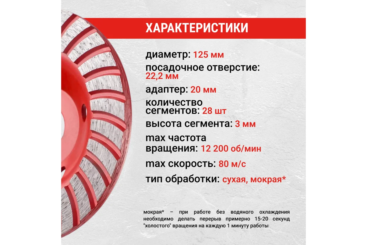 - Совместимость: с угловыми шлифовальными машинами (УШМ, болгарка) и специальными алмазными шлифователями