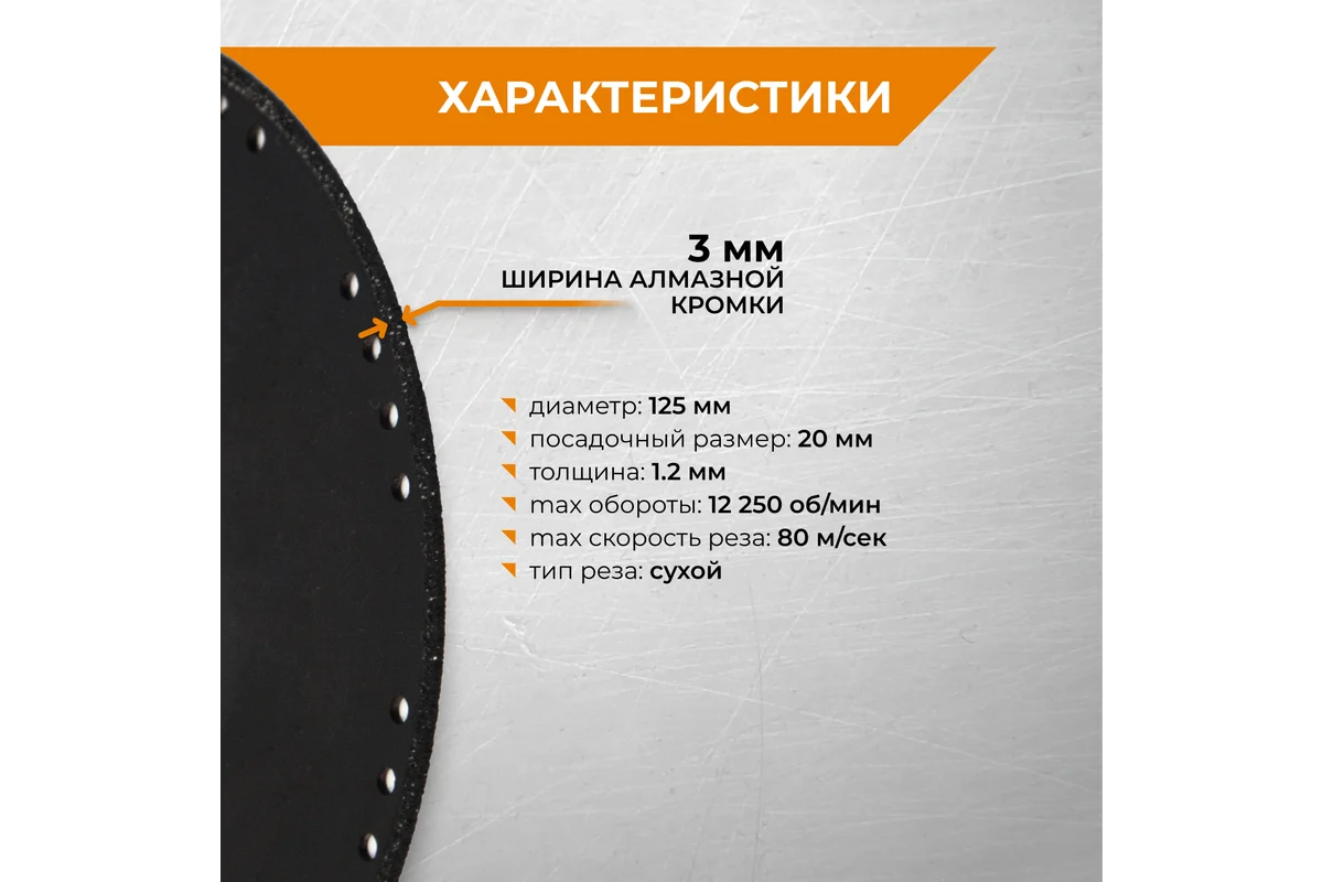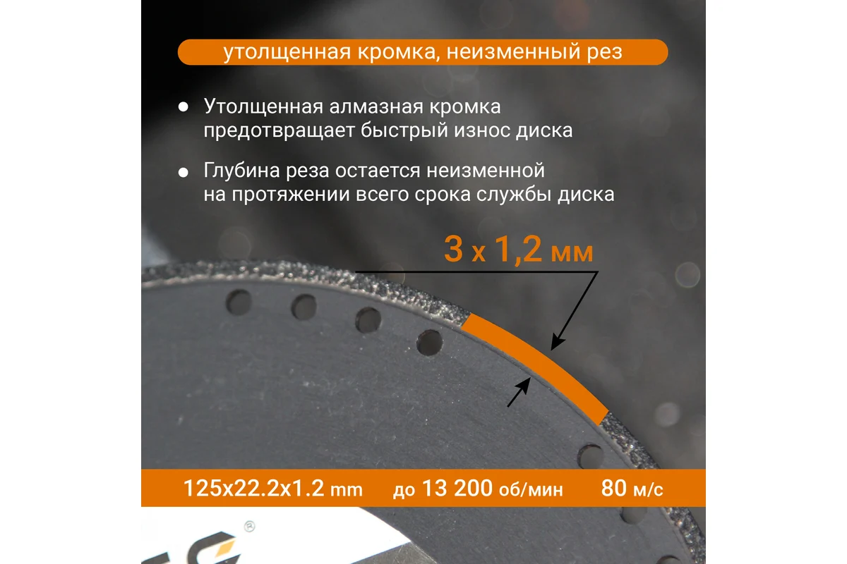 Диск имеет утолщенную алмазную кромку, что предотвращает быстрый износ диска.