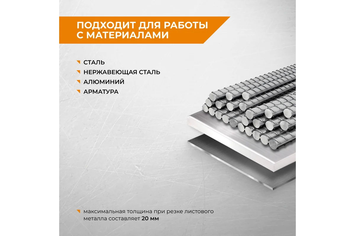 - Назначение: для работы со сталью, нержавеющей сталью, алюминием, а также листовым металлом и арматурой