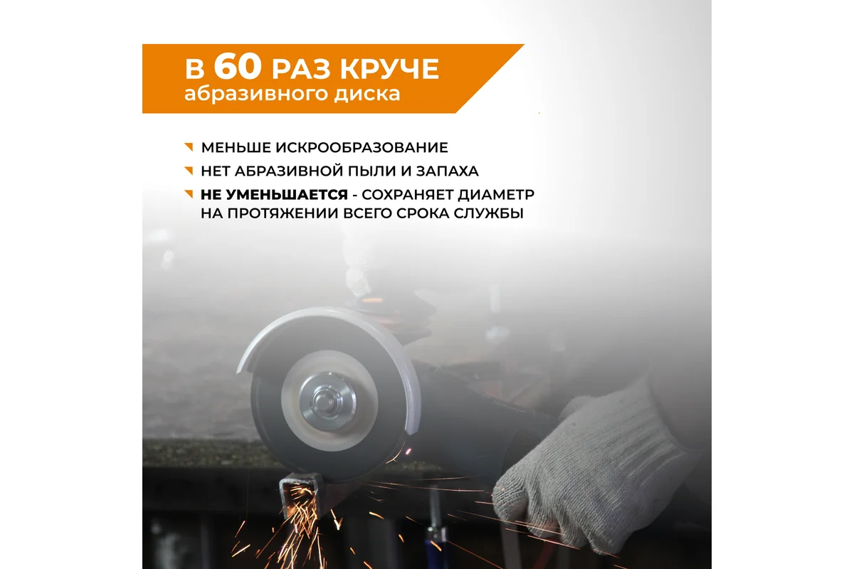 Преимуществом данного диска является то, что глубина реза остается неизменной на протяжении всего срока службы диска, имеет низкое искрообразование, а также отсутствие абразивной пыли и продуктов горения. В отличии от абразивных кругов обладает внушительным ресурсом: распил прута из нержавеющей стали диаметром 10 мм — не менее 1000 резов.