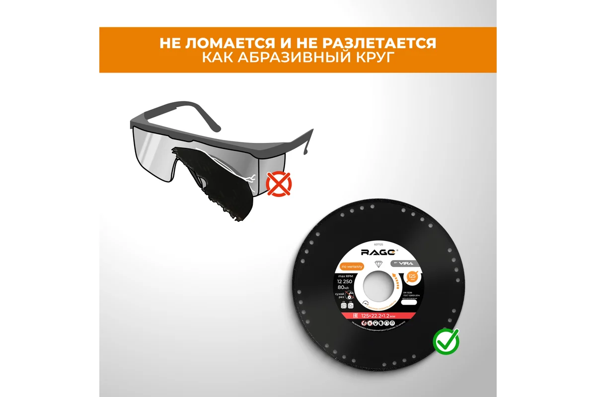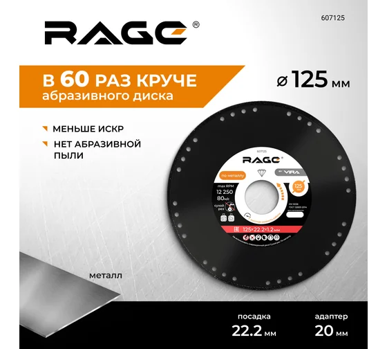 Диск алмазный отрезной по металлу 125х22.2 мм RAGE by VIRA 607125