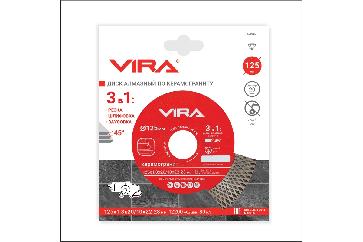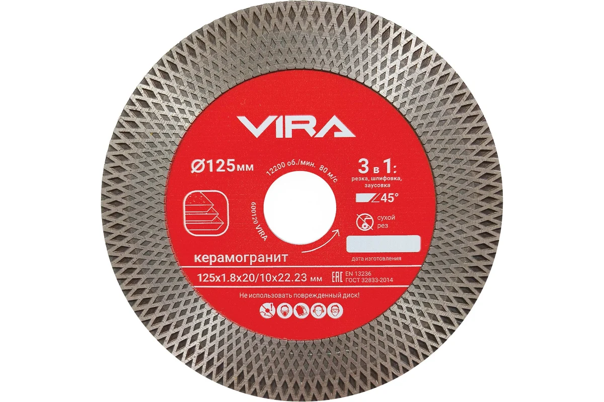 Диск алмазный по керамограниту с широкой кромкой 125 мм VIRA 600120