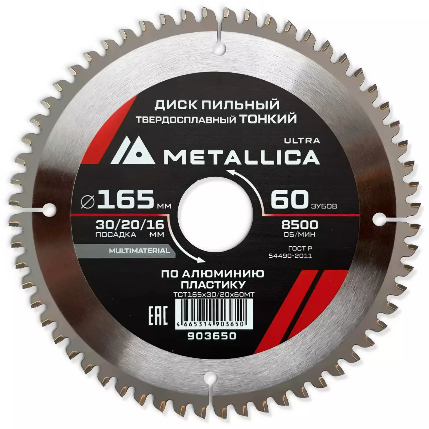 - Серия ULTRA. Мод. TCT165x30/20x60MT. Диаметр 165 мм, посадочное отверстие 30 мм, в комплекте 2 переходных кольца на 20 и 16 мм, Ширина/глубина пропила 2,0/54-57 мм, 60 зубов, max ск. вращ. 8500 об/мин.