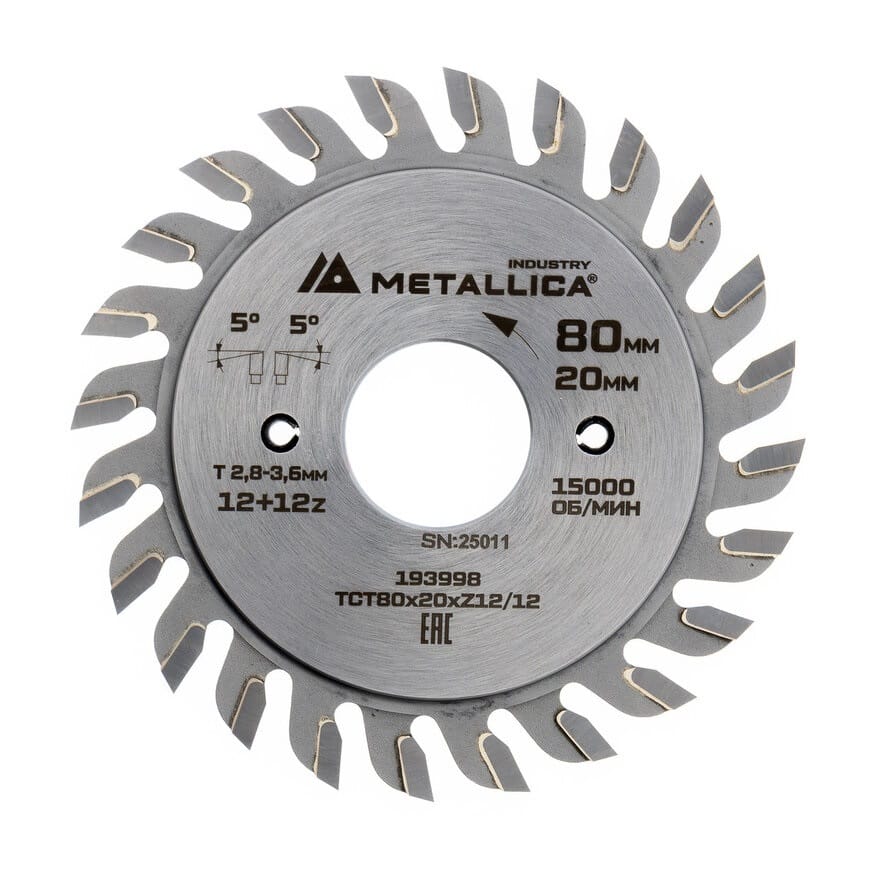Диск РЕГУЛИРУЕМЫЙ подрезной METALLICA Industry 80×20 мм, 12+12 зубов, T=2,8-3,6 мм по лам. панелям 193998
