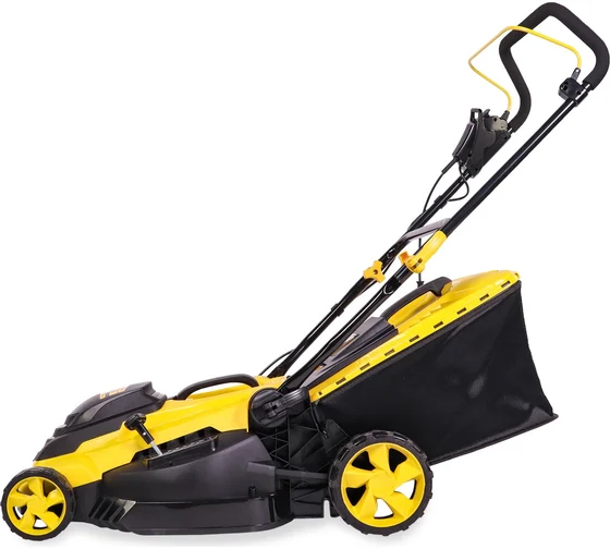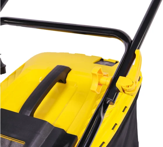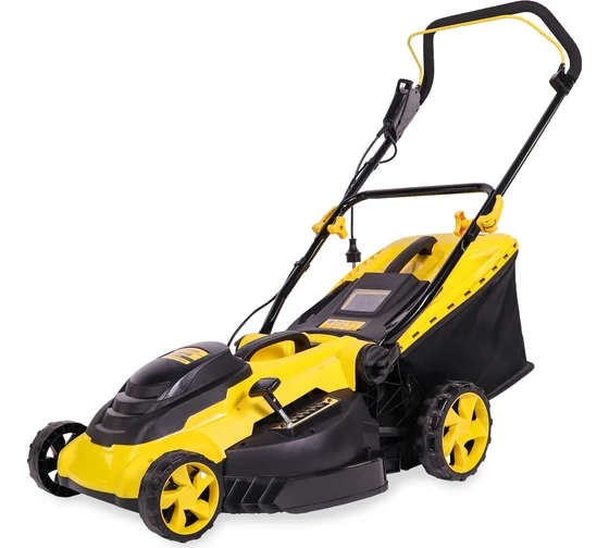 CHAMPION EM4118 — мощная электрическая газонокосилка с двигателем мощностью 1800 ватт. Привод от двигателя к ножу осуществляется через ремень, который в случае наезда на препятствие защищает электродвигатель от заклинивания и выхода из строя. Оснащена комбинированным травосборником объемом 50 литров. Имеет складную рукоятку, что обеспечивает её компактность при хранении. Высоты скоса регулируется центральным рычагом в диапазоне 25-75 мм. На корпусе расположена ручка для удобства переноски косилки. Складная рукоятка позволяет уменьшить место, необходимое для хранения. Регулировка высоты стрижки производится центральным рычагом, наполнение травосборника можно контролировать через смотровое окно.