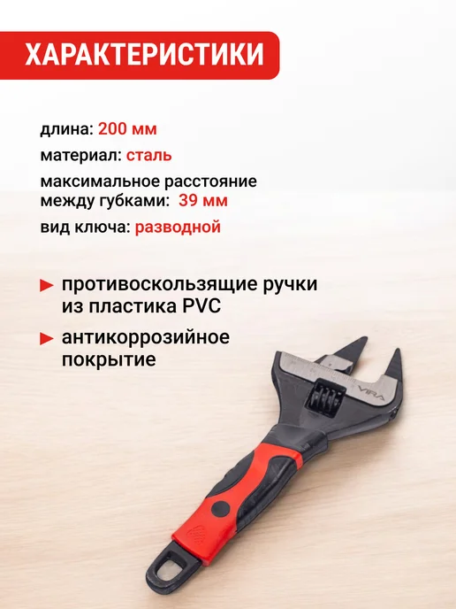 Разводной ключ предназначен для монтажа и демонтажа крепежных элементов и сантехники. Подвижная губка позволяет подстраиваться под разные размеры крепежа. А благодаря ультратонким губкам инструмент особенно удобен для работы в труднодоступных местах. Модель отличается удлиненными тонкими губками что очень удобно при работе с системами отопления и автомобильном транспорте где часто применяются контргайки. Ключ имеет антикоррозийное покрытие и противоскользящие ручки из пластика PVC.