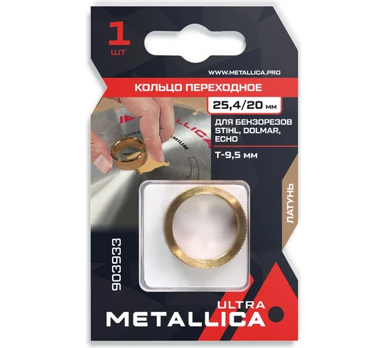 Кольцо переходное предназначено для установки алмазных и абразивных отрезных дисков с посадкой 25,4 мм на шпиндель бензиновых резчиков Dolmar, Echo, Stihl 20,0 мм, облегчает поиск и подбор дисков по посадочному отверстию под бензиновый резчик. Кольцо изготовлено из латуни для исключения износа шпинделя резчика и посадочного отверстия диска. Толщина кольца 9,5 мм. Серия ULTRA.