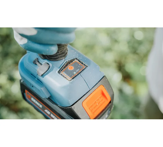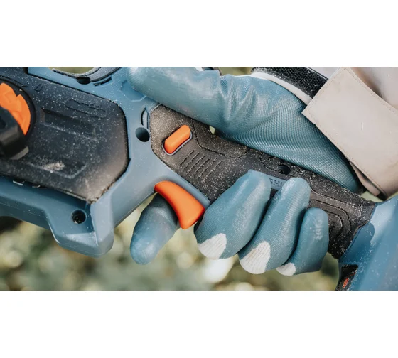 ➤ Скорость цепи регулируется нажатием на курок. Для безопасности работы оснащена предохранителем от случайного включения.
