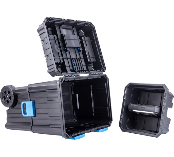 - Нижний ящик имеет встроенные колеса и является основой всего мобильного ящика, его можно использовать как удобный ящик для инструментов.