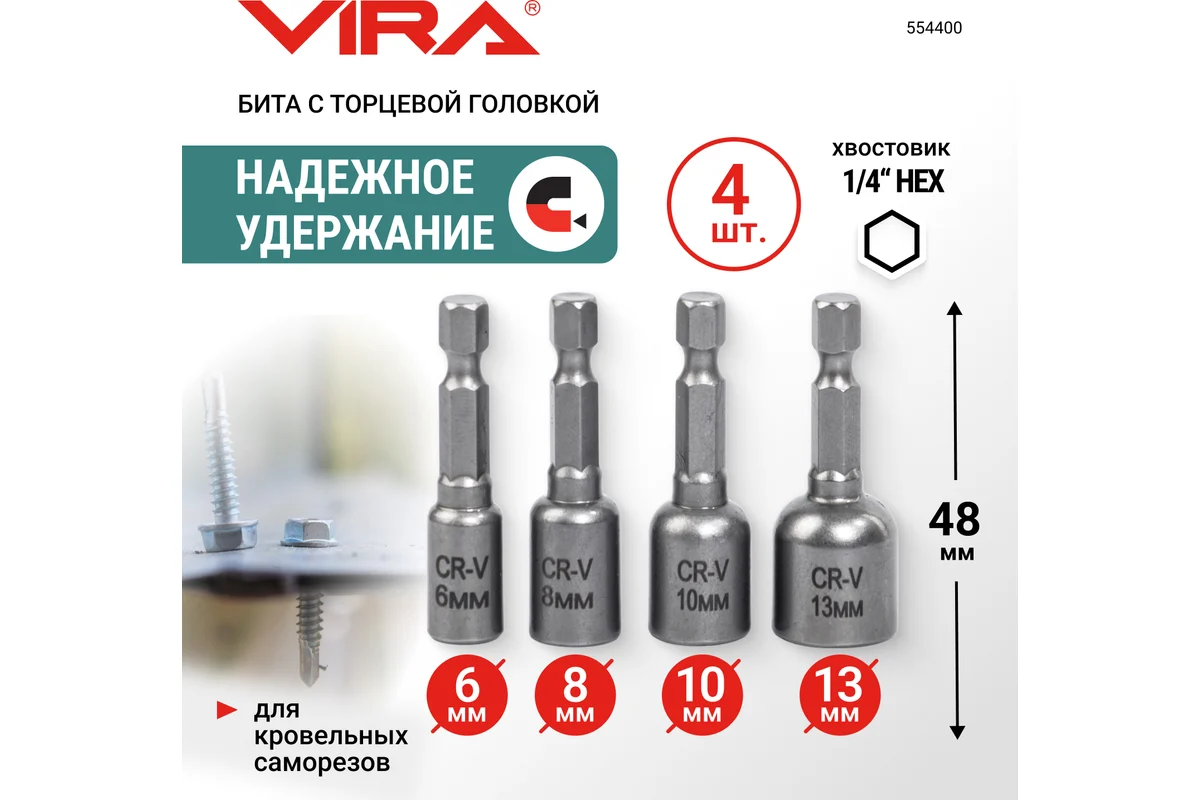 Набор бит для кровельных саморезов VIRA 4 шт 554400