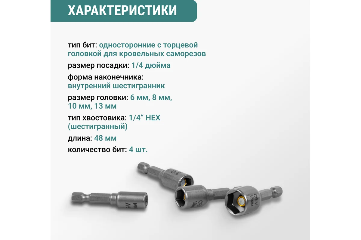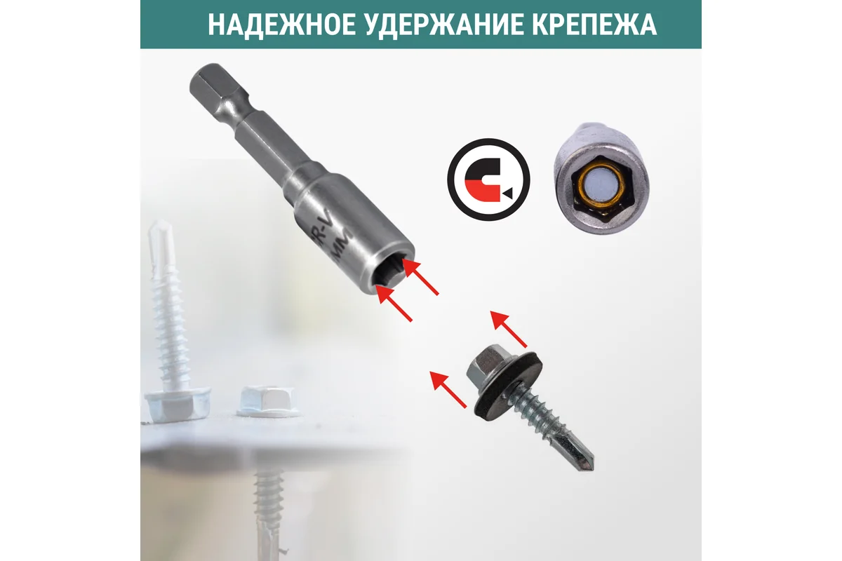 - Применение: для монтажа и демонтажа кровельных саморезов и крепежных элементов с шестигранной головкой