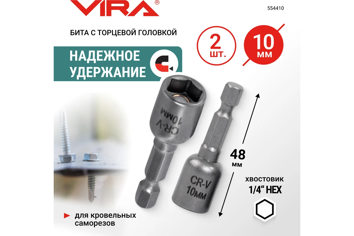 Набор бит VIRA для кровельных саморезов 10 мм 2 шт 554410