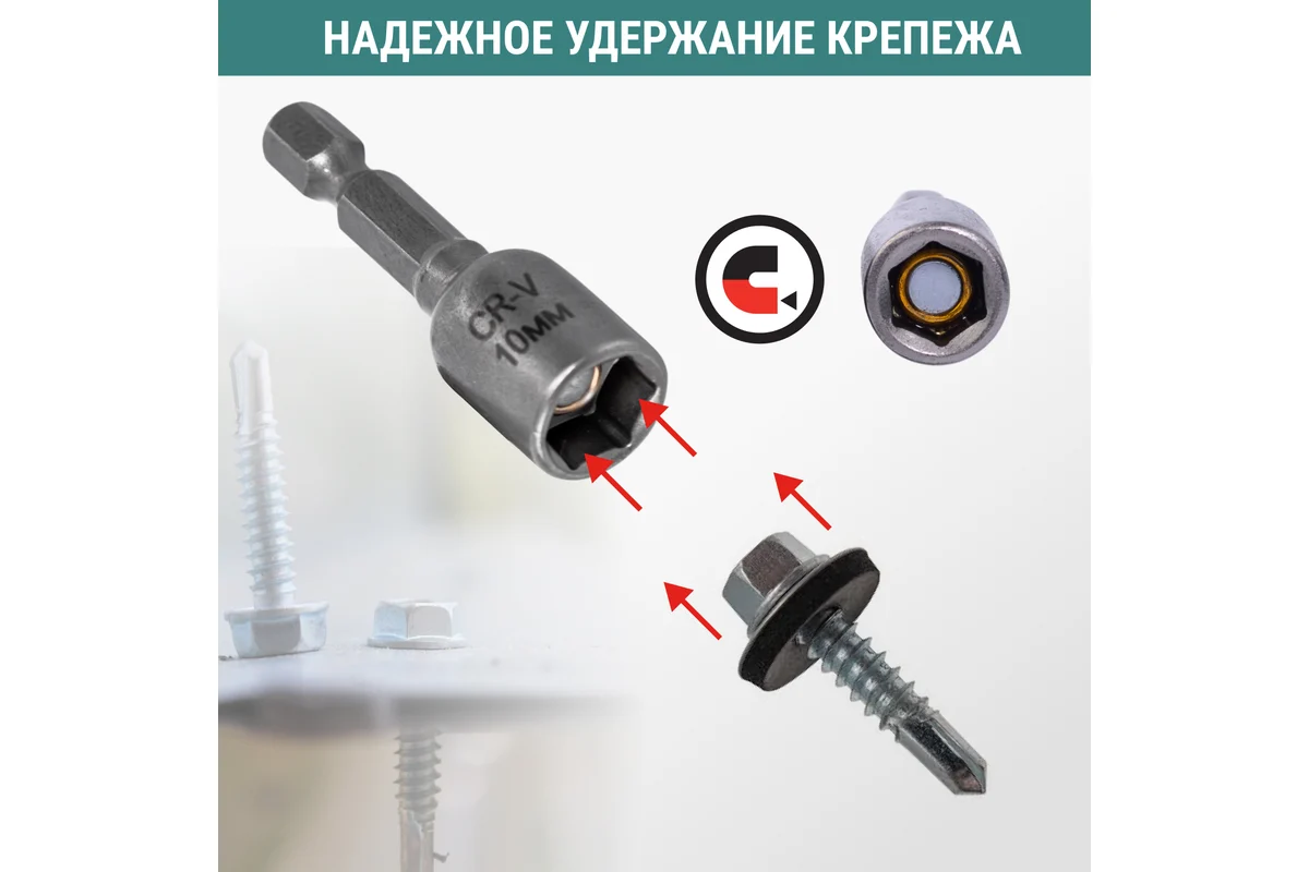 - Применение: для монтажа и демонтажа кровельных саморезов и крепежных элементов с шестигранной головкой