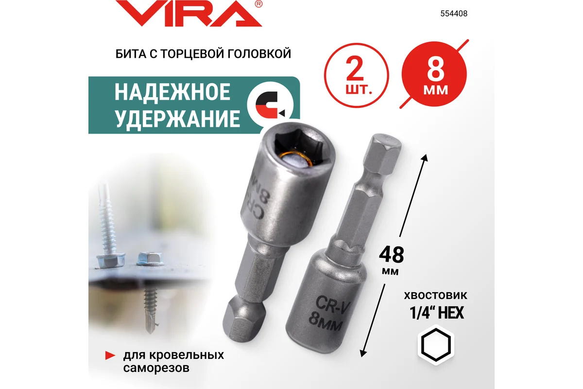 Набор бит VIRA для кровельных саморезов 8 мм 2 шт 554408