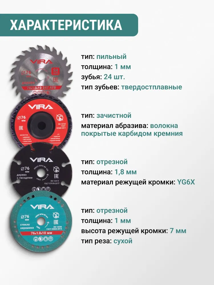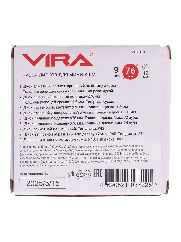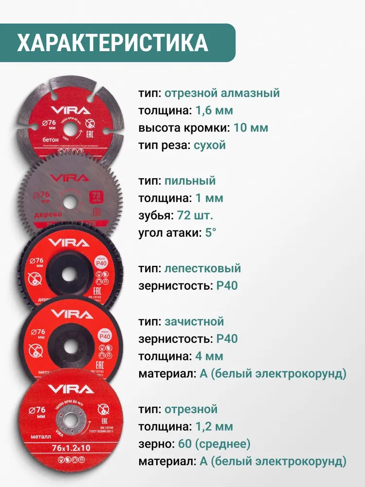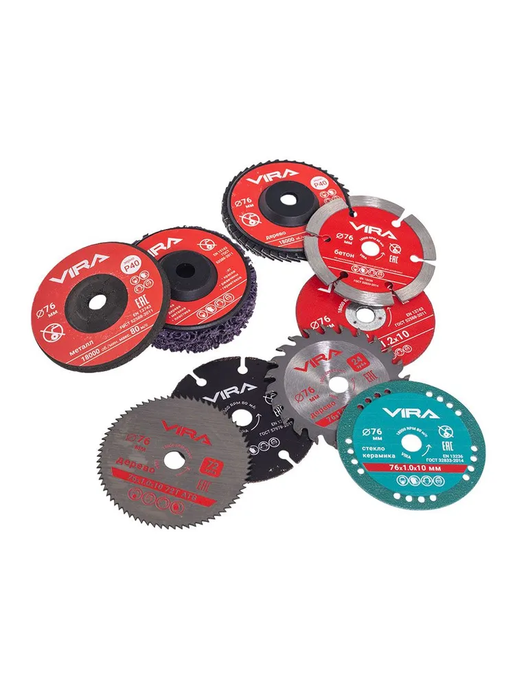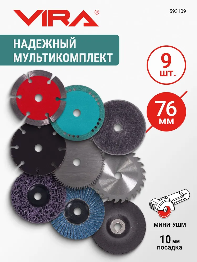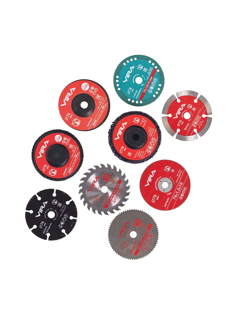 Набор дисков для мини-УШМ 76 мм 9 предметов VIRA 593109