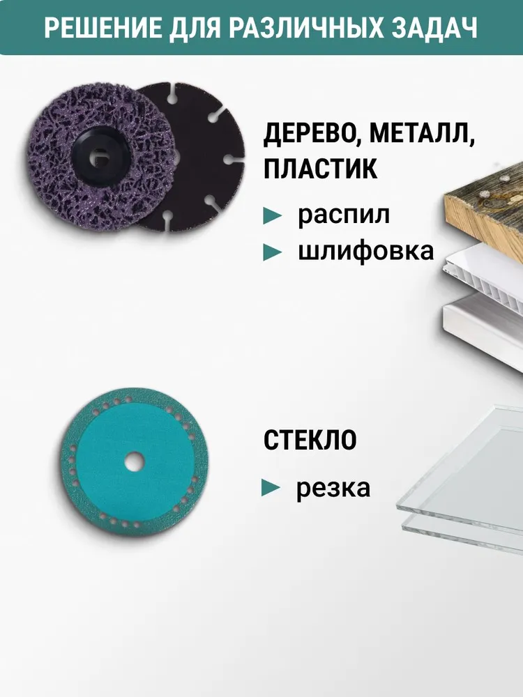 Набор дисков предназначен для работы на мини УШМ с различными материалами.