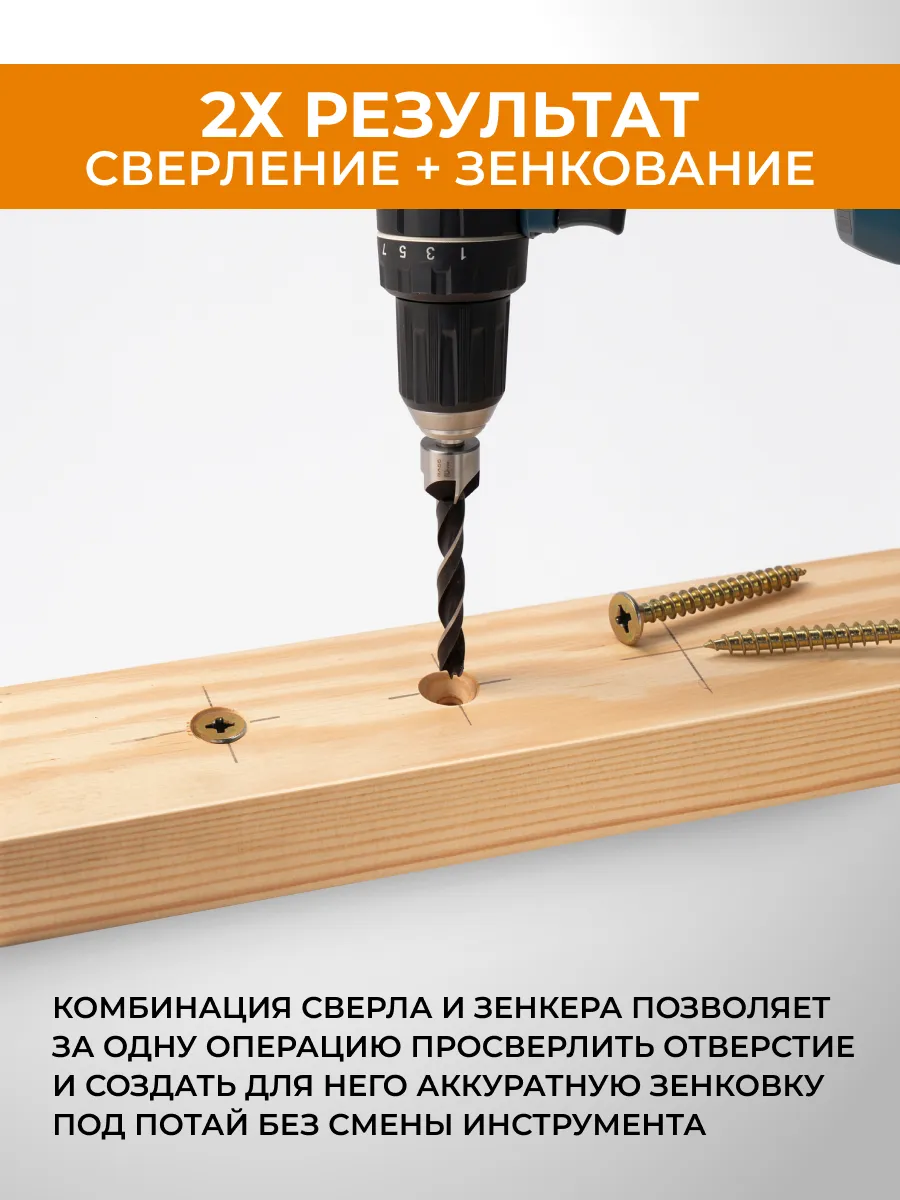Комбинация сверла и зенкера позволяет за одну операцию просверлить отверстие и создать для него аккуратную зенковку под потай. Это экономит время и обеспечивает идеальную соосность.