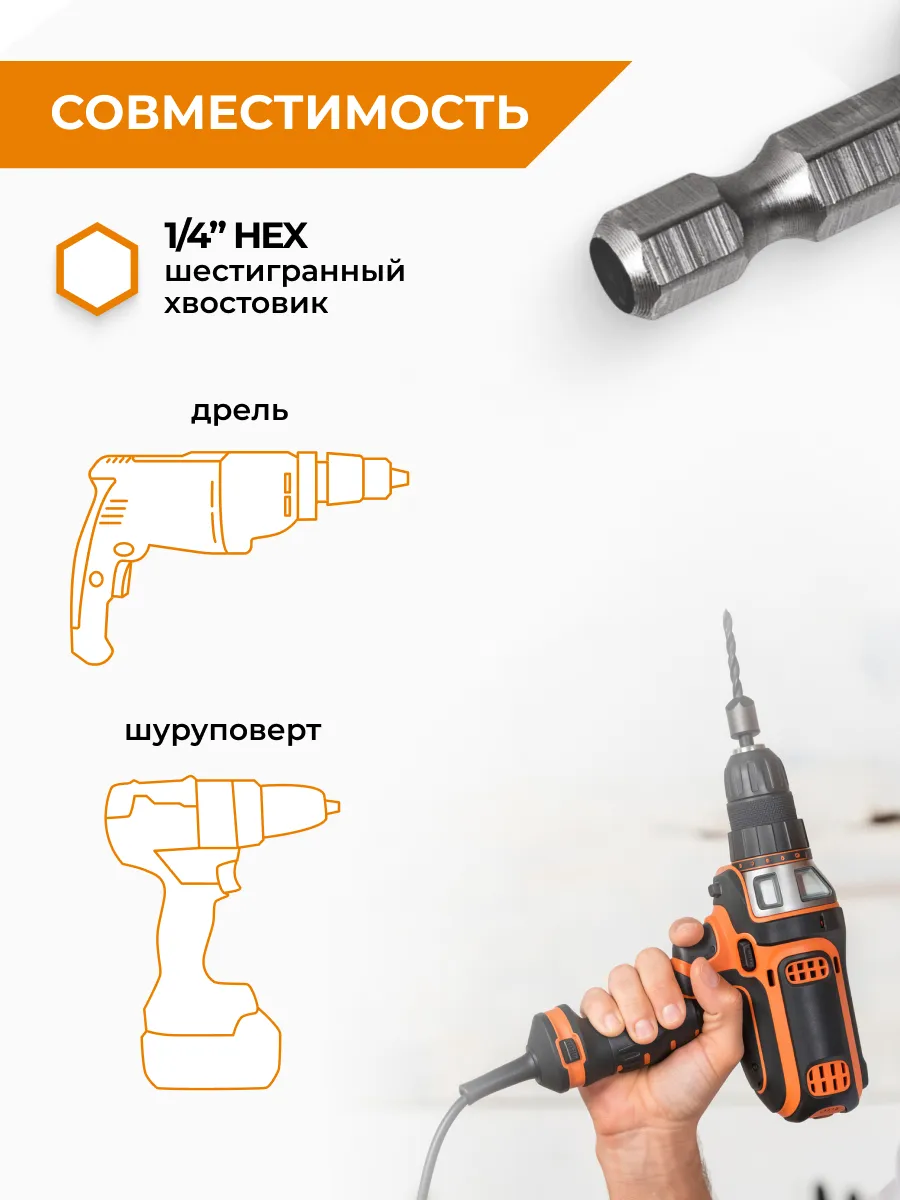 Тип хвостовика: 1/4“ HEX (шестигранный).
