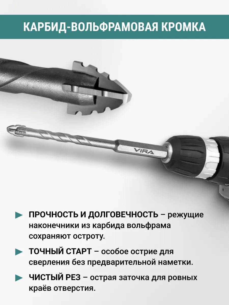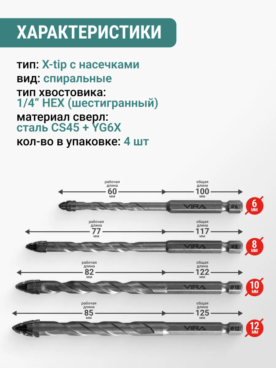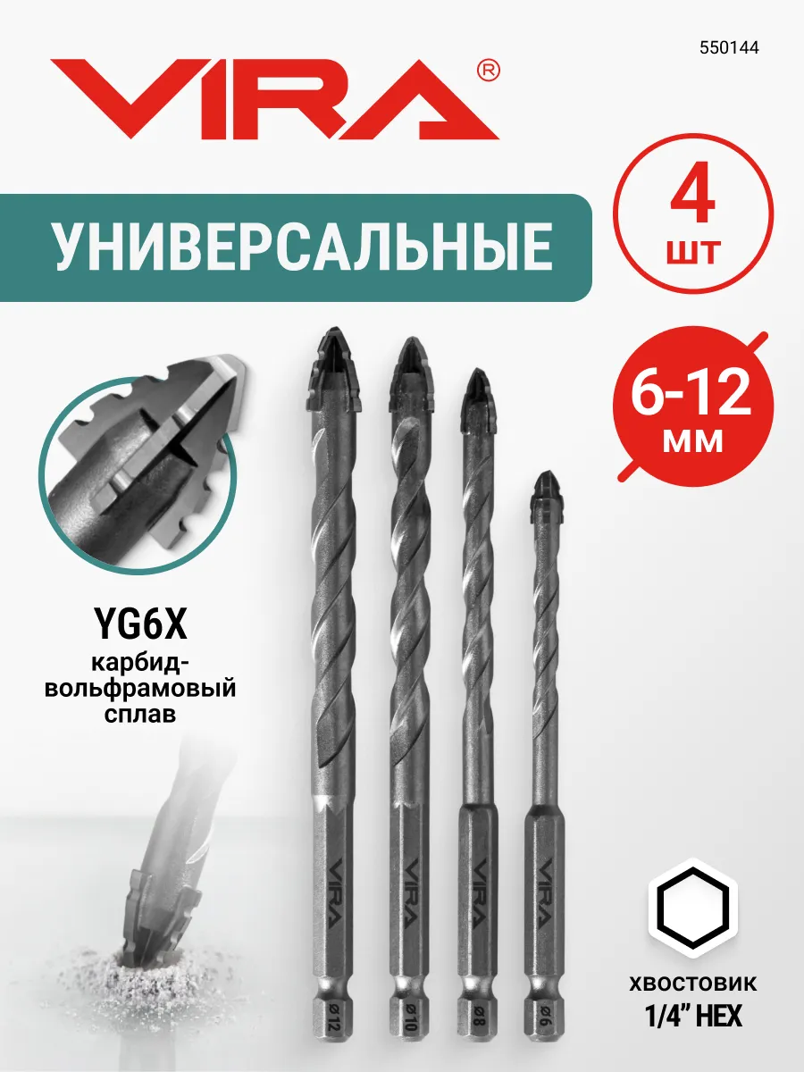 Набор сверл универсальных 6, 8, 10, 12 мм VIRA 550144