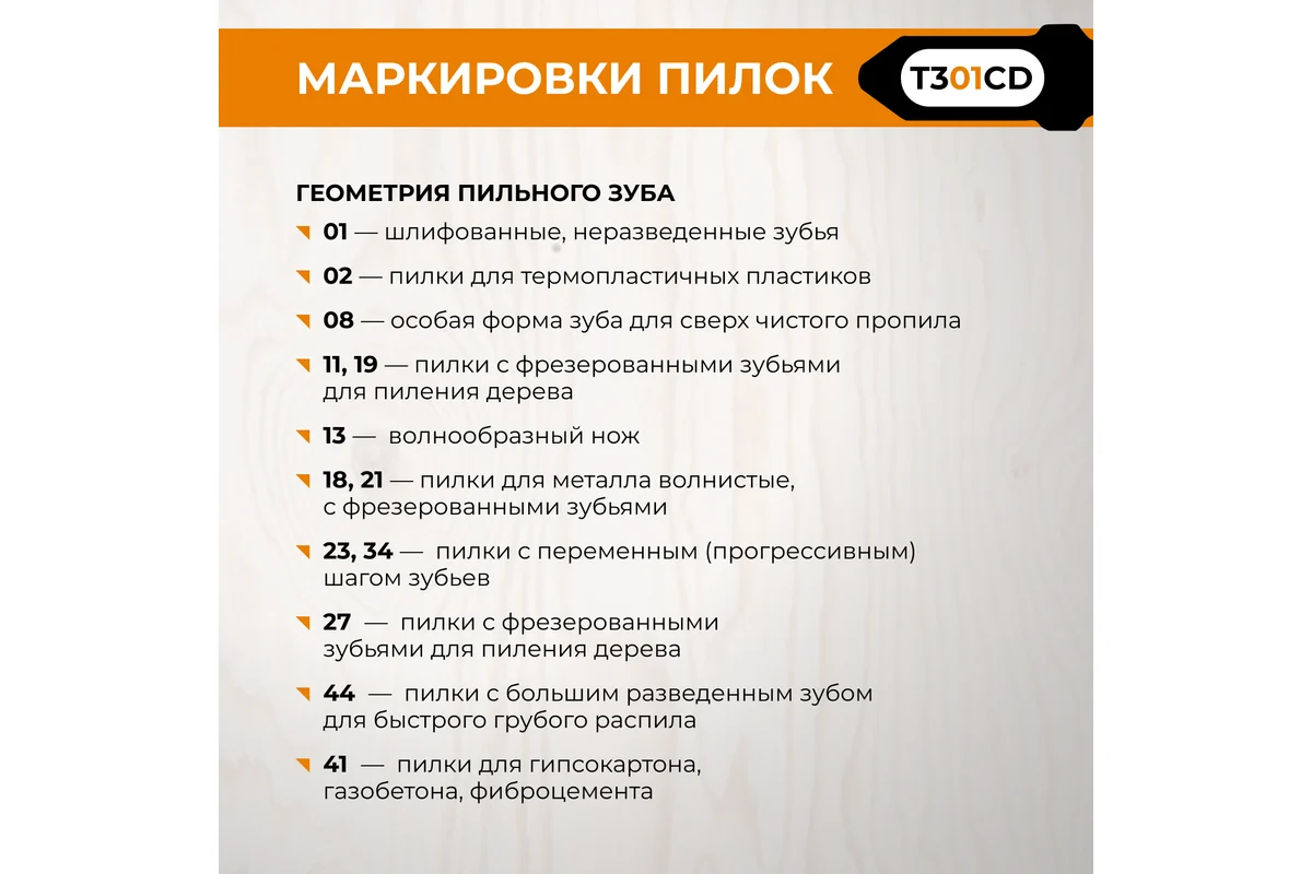- Тип пилки: T301CD
