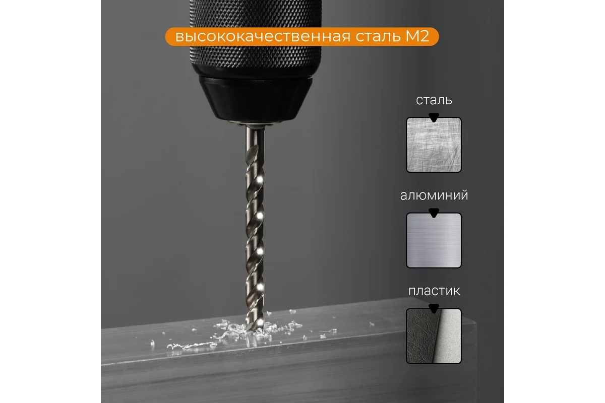 - Применение: для эффективного сверления стали, чугуна, меди, бронзы и твердых пластмасс, например, плексиглас