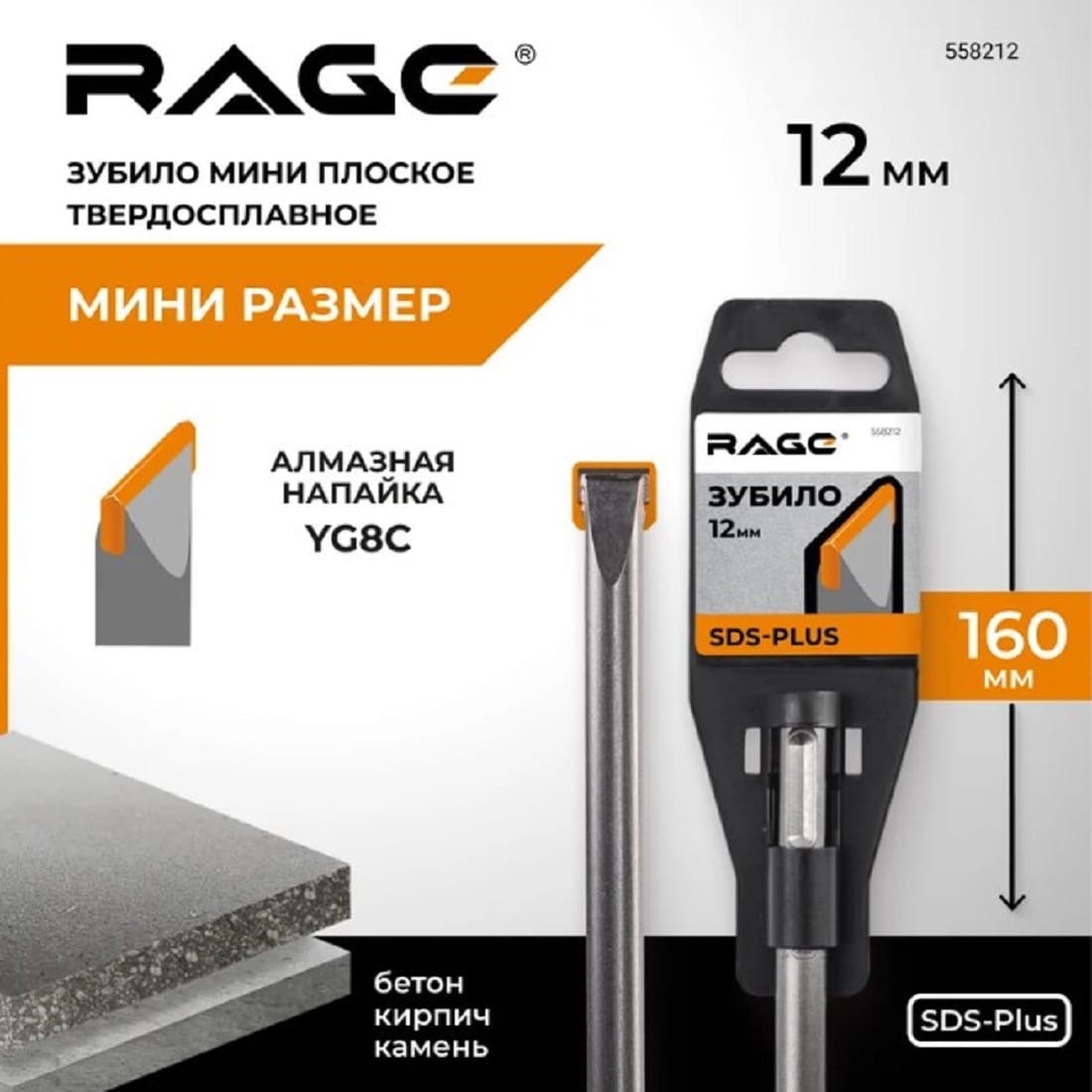Зубило мини плоское твердосплавное SDS-plus 12х160 мм RAGE 558212